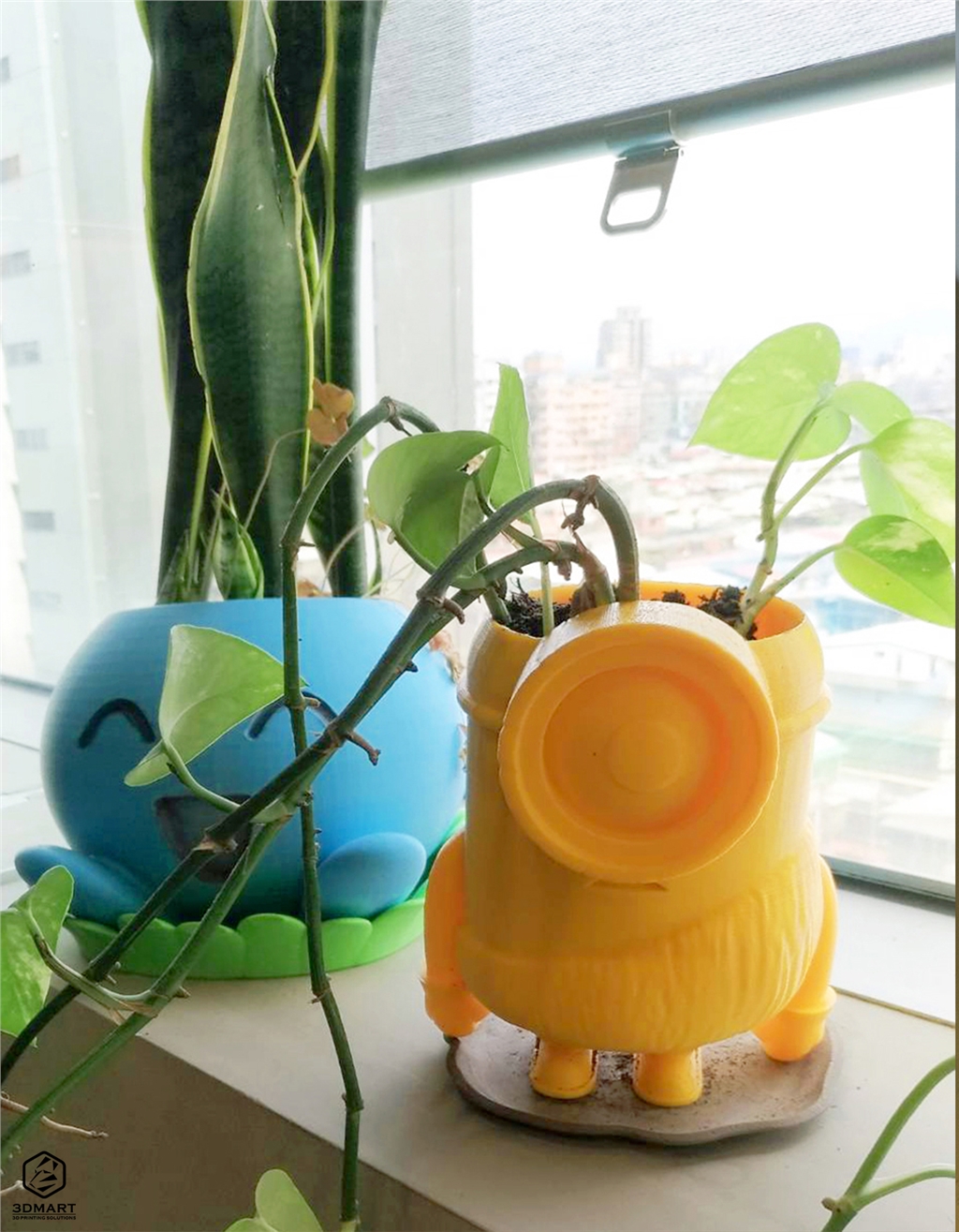【3D列印應(yīng)用】辦公室新夥伴:3D列印小小兵進(jìn)駐! 3DMart的辦公室中有不少綠化盆景,最近我們給他們換上新衣服也增添辦公室的樂(lè)趣,首先鎖定的就是沒(méi)頭毛又可愛(ài)的小小兵! 這次使用的是Ultimaker 3,主體是PLA搭配超級(jí)小幫手PVA水溶性支撐;經(jīng)過(guò)2天17小時(shí)列印完成後拿到水裡泡澡囉! 給大家看看泡澡到一半、流鼻涕的小小兵,PVA水溶性支撐在列印完成後是硬脆的,放進(jìn)水裡之後會(huì)像圖中一樣慢慢融化並且可以完全溶解在水中。 清潔過(guò)後先讓大家看看3D列印完成的樣子,裸體的小小兵直接拿來(lái)使用也是非常漂亮。 再來(lái)就是換盆栽的大工程,可以看到左邊的盆栽外觀醜醜的不太好看;我們即將換到可愛(ài)的小小兵裡面並讓小小兵長(zhǎng)頭髮。首先要先放入一些新土,並將舊土混和一些到裡面。接著才將植物的根部連部分的土一起放入。 先讓大家看看換盆好之後的裸體小小兵,比起原本的盆栽已經(jīng)好看許多;不過(guò)這樣還不夠,我們準(zhǔn)備用壓克力顏料幫小小兵穿衣服囉! 由於FDM形式的3D列印仍然會(huì)有些許紋路,所以在上壓克力顏料的時(shí)候要多塗幾層;想要嘗試的朋友記得顏料要乾一層再上另一層會(huì)更漂亮,慢工出細(xì)活、千萬(wàn)別心急??! 對(duì)比單純的3D列印成品,上色後的小小兵顯得更有精神,歡迎大家也列印自己喜歡的腳色動(dòng)手試試看!如果沒(méi)有3D列印機(jī),我們也提供高品質(zhì)代印服務(wù)喔!所有最新消息都會(huì)在我們的粉絲專頁(yè)上分享,歡迎大家持續(xù)關(guān)注! 列印你的小小兵:https://www.myminifactory.com/object/3d-print-minion-stone-age-planter-28678 粉絲專頁(yè):https://www.facebook.com/www.jinshanghunli.com/