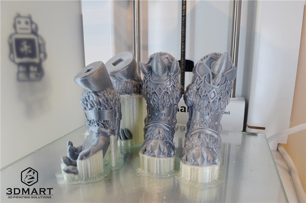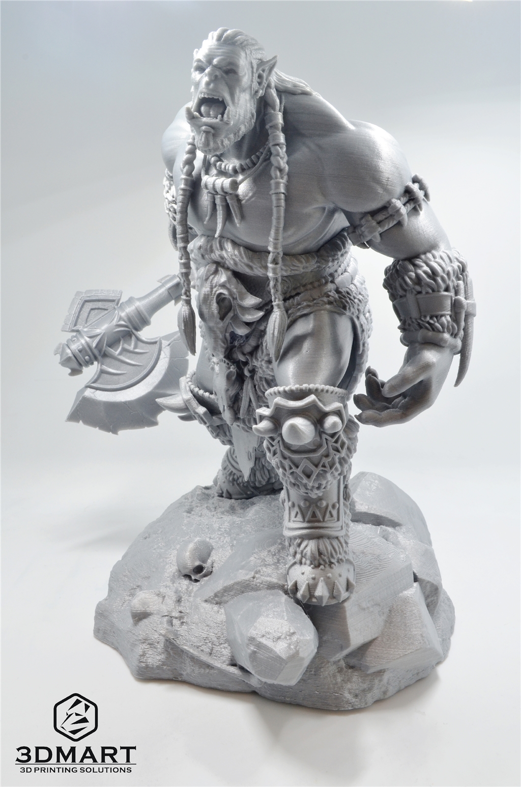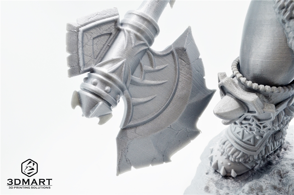 【3d列印應(yīng)用】玩過魔獸世界必知! 怒吼的杜洛坦 你喜歡玩電玩嗎? 若是電玩愛好者的話,那麼曾經(jīng)風(fēng)靡一時(shí)的魔獸世界,想必你一定有玩過吧? 在魔獸世界裡的厲害角色-杜洛坦,你還記得他嗎? 這次makerfaire2017展覽也特別帶他出任務(wù),十分吸引大家的目光唷! 就讓我再帶大家看看列印過程與細(xì)節(jié)照片吧! 這次我們都是使用Ultimaker 系列(左為Ultimaker 3 Extended 右為Ultimaker 3)的 3d印表機(jī)列印,兩臺(tái)同時(shí)一 起印更快速。 雙噴頭的設(shè)計(jì)讓我們可以使用Ultimaker PLA 銀色與Ultimaker PVA水溶性支撐線材,設(shè)定的部分將層厚調(diào)到0.15mm 、填充20%,全部列印完的時(shí)間需要150小時(shí)。 圖為主體上半身3d列印完成 圖為手跟腳3d列印部分 列印完成後,小心地從3d印表機(jī)中拆除,接著只要丟進(jìn)水中,等待他慢慢溶解PVA支撐材的部分,溶解的時(shí)間約為 20小時(shí)。溶解完成之後就只要將各個(gè)零件組裝起來,就大功告成了! 接著讓我們一同欣賞列印的成品吧! 看看霸氣怒吼的杜洛坦,多威風(fēng)呀! 臉部表情與上半身的細(xì)節(jié)都有鉅細(xì)靡遺的列印出來 背面也有許多毛皮的細(xì)節(jié),也都通通沒漏掉 杜洛坦側(cè)面照再來一張,這胸肌真的很厲害! 嘿嘿 斧頭上的裂痕居然也印出來了,真是超級(jí)逼真的啦!!! 還看不過癮嗎? 我們還拍了360度照片,可以慢慢地自己邊轉(zhuǎn)邊看欣賞唷! 喜歡這隻魔獸世界的獸人-杜洛坦,也可以自行到gambody網(wǎng)站(下載點(diǎn))購(gòu)買唷!