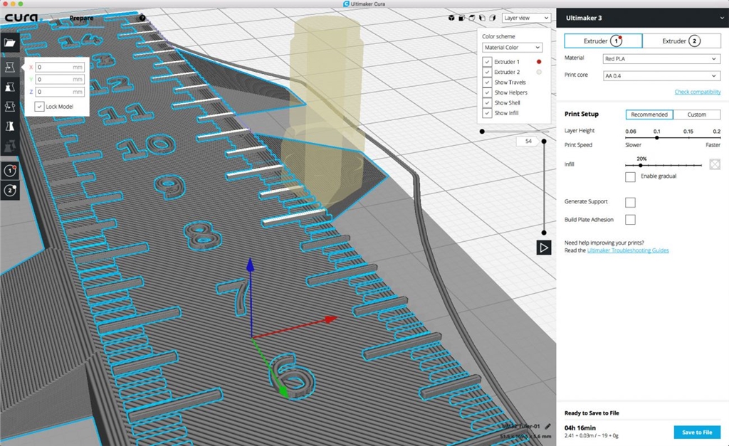 【3D列印快訊】Ultimaker Cura 3.1正式版發(fā)布 現(xiàn)在已經(jīng)推出Ultimaker Cura 3.1的穩(wěn)定版本了。新版本是奠基於所有Ultimaker Cura以前的版本上,具 有新的切片功能,調(diào)整和修復(fù)功能。我們要感謝每個(gè)花時(shí)間測(cè)試Beta版本的人,幫助我們創(chuàng)造最佳的用戶 體驗(yàn)。 更新重點(diǎn) •0.25mm AA 列印噴嘴的新產(chǎn)品,新的列印噴嘴具有超精細(xì)的線寬,可用在高細(xì)節(jié)的表面處理。 •新產(chǎn)品Breakaway,一種新型的乾燥後處理材料,可以快速輕鬆地移除。 •增強(qiáng)圖層視圖 - 通過彩色表示進(jìn)行速度的實(shí)時(shí)仿真列印策略,獲得更聰明的列印工作流程。 •快速相機(jī)控制 - 使用工具欄按鈕快速輕鬆地重新定位相機(jī)視圖。 •提高速度 - 處理,更換列印機(jī)或配置檔案的回應(yīng)時(shí)間更快。 •與HP 3D Scan Pro 5相容。 加強(qiáng)UI 切換配置檔案速度更快速。之前在Ultimaker Cura複製和移除配置檔案可能需要一段時(shí)間,最新版本現(xiàn)在能夠立 即切換。 選擇列印機(jī)更快速。移除印表機(jī)更即時(shí)。沒有反應(yīng)遲緩的畫面。 處理速度更快。計(jì)算法線、載入模型和切片時(shí),速度提高5 - 10%。 快速相機(jī)控制。新按鈕已添加到介面上,可以快速重新定位列印平臺(tái)上的攝影機(jī)視圖。這包括等軸測(cè)視圖,前視 圖和左/右側(cè)視圖。 從左到右:等軸測(cè)視圖,前視圖,上視圖,左視圖和右視圖。 圖層視圖。現(xiàn)有的圖層視圖已更新,現(xiàn)在有新增一個(gè)模擬列印策略的虛擬列印噴嘴。可以用來預(yù)覽填充和牆壁的 列印順序,以及避免運(yùn)行順序影響造成懸垂的狀態(tài)。已新增圖層路徑滑軌來瀏覽所選圖層的列印策略。 熱鍵使用者能夠在“層”視圖中進(jìn)行導(dǎo)覽。上下箭頭滾動(dòng)以瀏覽圖層,左右滾動(dòng)來瀏覽圖層的步驟。按住Shift + 箭頭鍵將所有方向增加10。 虛擬噴嘴顯示每個(gè)圖層的列印策略 進(jìn)料量可視化。進(jìn)料量可視化已新增到圖層視圖顏色方案選擇器。進(jìn)料量由相應(yīng)的顏色作表示,從藍(lán)色到紅色。 用藍(lán)色表示20mm / s的速度(例如列印物件的第一層),範(fàn)圍為250mm / s的速度(例如列印噴嘴的行進(jìn)方式) ,用紅色表示。使用此功能可以讓用戶了解每個(gè)模型零件的速度,能更好地控制列印物件。 進(jìn)料量可視化 在平臺(tái)上鎖定模型。移動(dòng)工具有一個(gè)新選項(xiàng)來鎖定選擇的模型到平臺(tái)。鎖定時(shí),模型不能在X,Y或Z方向移動(dòng)。 運(yùn)行。運(yùn)行列印噴嘴在螢?zāi)坏目刂葡乱苿?dòng)。當(dāng)通過USB連接時(shí),Ultimaker 2+和其他RepRap印表機(jī)現(xiàn)在可以通過 Ultimaker Cura完全的控制。每個(gè)軸可以用0.1,1,10和100mm的增加作移動(dòng)。 通過USB連接時(shí),X,Y和Z軸現(xiàn)在可以通過Ultimaker Cura進(jìn)行控制 載入大型模型。載入大型/精細(xì)模型並以高分析率對(duì)其進(jìn)行切片可能會(huì)影響以前版本中Ultimaker Cura的性能?,F(xiàn)在 新增了一個(gè)新功能,在切換到固定模式時(shí)卸載圖層視圖,加快Ultimaker Cura的備份速度,同時(shí)不會(huì)丟失G-code/ 圖層視圖的訊息。 草稿檔案夾。草稿檔案夾現(xiàn)在能在Ultimaker Cura配置檔案夾中使用。該檔案夾可以載入後處理外掛腳本,這些草 稿會(huì)自動(dòng)顯示在Ultimaker Cura中。 HP 3D掃描相容性。HP 3D掃描版本5.3.0結(jié)果可以直接導(dǎo)出到Ultimaker Cura 3.0.4和更高版本。 優(yōu)化報(bào)告問題工作的流程。問題報(bào)告會(huì)自動(dòng)生成,並允許用戶在發(fā)生問題時(shí)輕鬆地向開發(fā)人員傳送描述。 新的切片改善功能 新增給0.25mm AA列印噴嘴的新列印配置檔案。為0.25mm AA列印噴嘴增加了新配置檔案。此配置檔案包括優(yōu)化的 切片設(shè)置,更輕鬆創(chuàng)造高精細(xì)度的列印。 左邊的工具上使用0.4mm的AA列印噴嘴列印,右邊的工具上使用0.25mm的AA列印噴嘴列印。 0.25mm AA列印噴嘴的一個(gè)關(guān)鍵優(yōu)勢(shì)是能夠列印精密的細(xì)節(jié)和文字,而這在無法在其他列印噴嘴上達(dá)成。 新增給Breakaway的新配置檔案。為新的支撐材料Breakaway新增了新的列印配置檔案。此配置檔案包含優(yōu)化的列印 設(shè)定,便於列印使用。 Breakaway的後期處理是完全乾燥的,這對(duì)水敏性材料是很有用的。也比水溶性材料的移除 速度更快。 啟動(dòng)浮動(dòng)模型。在之前的版本中,當(dāng)禁用支撐時(shí),模型會(huì)被移到列印平臺(tái)上。當(dāng)設(shè)定啟動(dòng)時(shí),模型開始浮動(dòng)(即使創(chuàng) 造出不可能列印的情況)?,F(xiàn)在可以將單獨(dú)的模型堆疊在一起,列印成一個(gè)部分。 切片容許度。品質(zhì)設(shè)置類別中的一個(gè)新設(shè)定,影響交點(diǎn)以影響對(duì)角線曲面的尺寸精度。用戶可以選擇以下行為: “Inclusive包容性”使間隔更窄,“Exclusive獨(dú)占”使間隙更寬,“Middle中間”能快速處理。 當(dāng)使用“Middle中間”時(shí),第一層將會(huì)高出一半的高度補(bǔ)償增加的半層。此功能的潛在用處是為了列印的螺絲孔時(shí)能 創(chuàng)造出更好的公差。 優(yōu)化的彎折形狀。之字形圖案現(xiàn)在列印的更完整。他們列印出各種方式,現(xiàn)在線有一個(gè)5 micron的