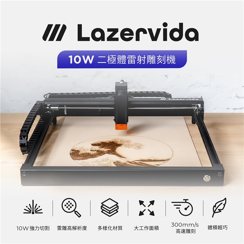 備註:Lazervida 為組裝式雷射雕刻機(jī),需自行組裝(組裝時(shí)間約 30-60 分鐘)