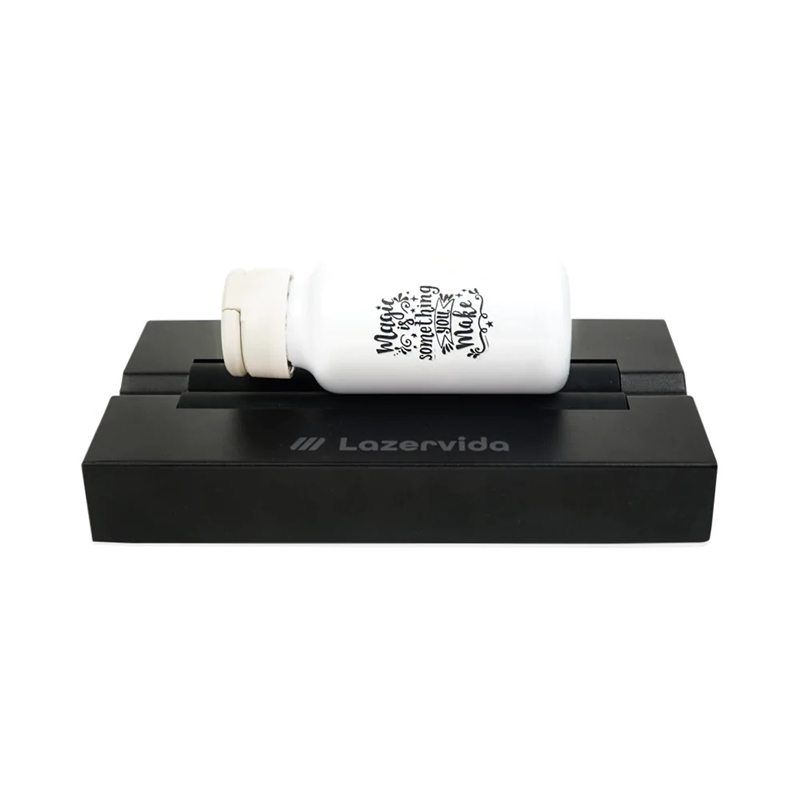 Lazervida旋轉(zhuǎn)軸套件突破平面雕刻,協(xié)助雕刻於各式圓柱物品上。如酒瓶、酒杯、保溫杯等圓柱體表面雕刻。