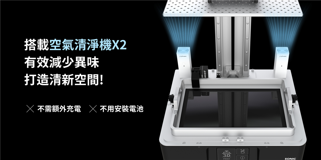 全新配備兩個可拆式空氣清淨機,不需額外充電也不用安裝電池,插上機臺即可使用,有效消除列印時產(chǎn)生的異味,雙倍舒適、雙倍清新!