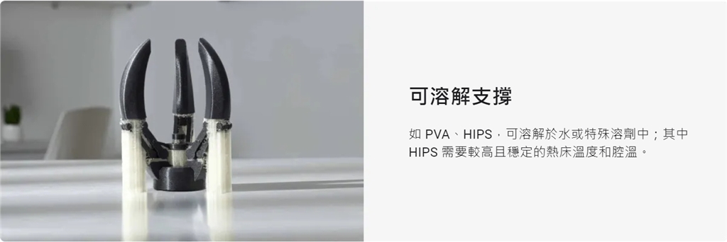 Artisan雙噴頭列印模組可列印 PVA、HIPS 等可溶解耗材,無懼複雜幾何結(jié)構(gòu),成品支撐結(jié)構(gòu)面平整美觀。