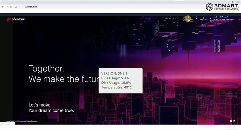 完成印前作業(yè)設(shè)定,使用網(wǎng)路、USB就能將切片檔案上傳並與Phrozen Sonic連接,且只要購(gòu)買這款機(jī)型就附贈(zèng)專業(yè)軟體FormWare!透過(guò)簡(jiǎn)單的網(wǎng)頁(yè)上傳介面、列印機(jī)的觸控螢?zāi)唬屖褂谜呖梢郧宄鞑t的按照指示操作。